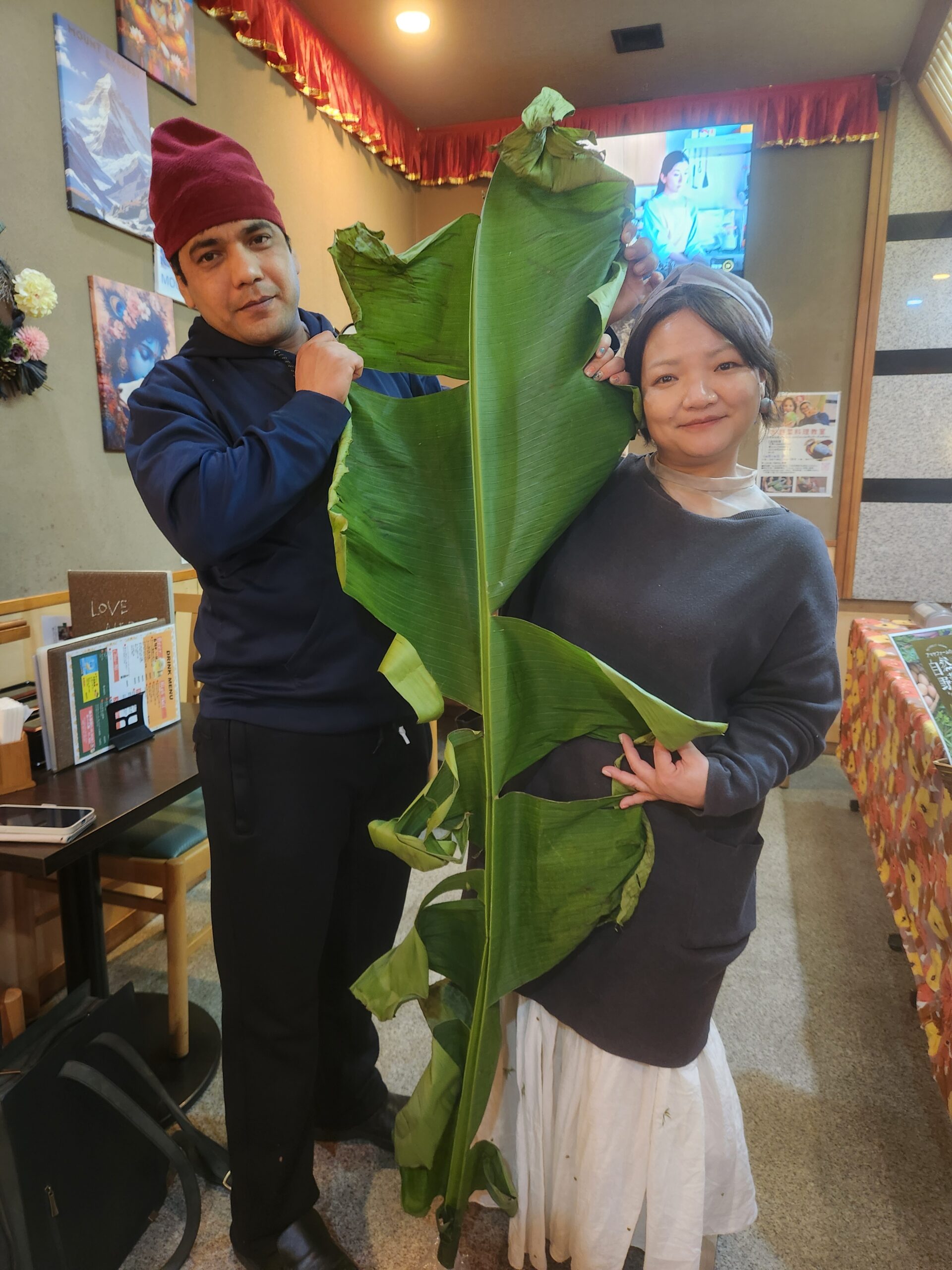こちらはバナナの葉っぱ。包み焼きに使うと美味しいそうです。