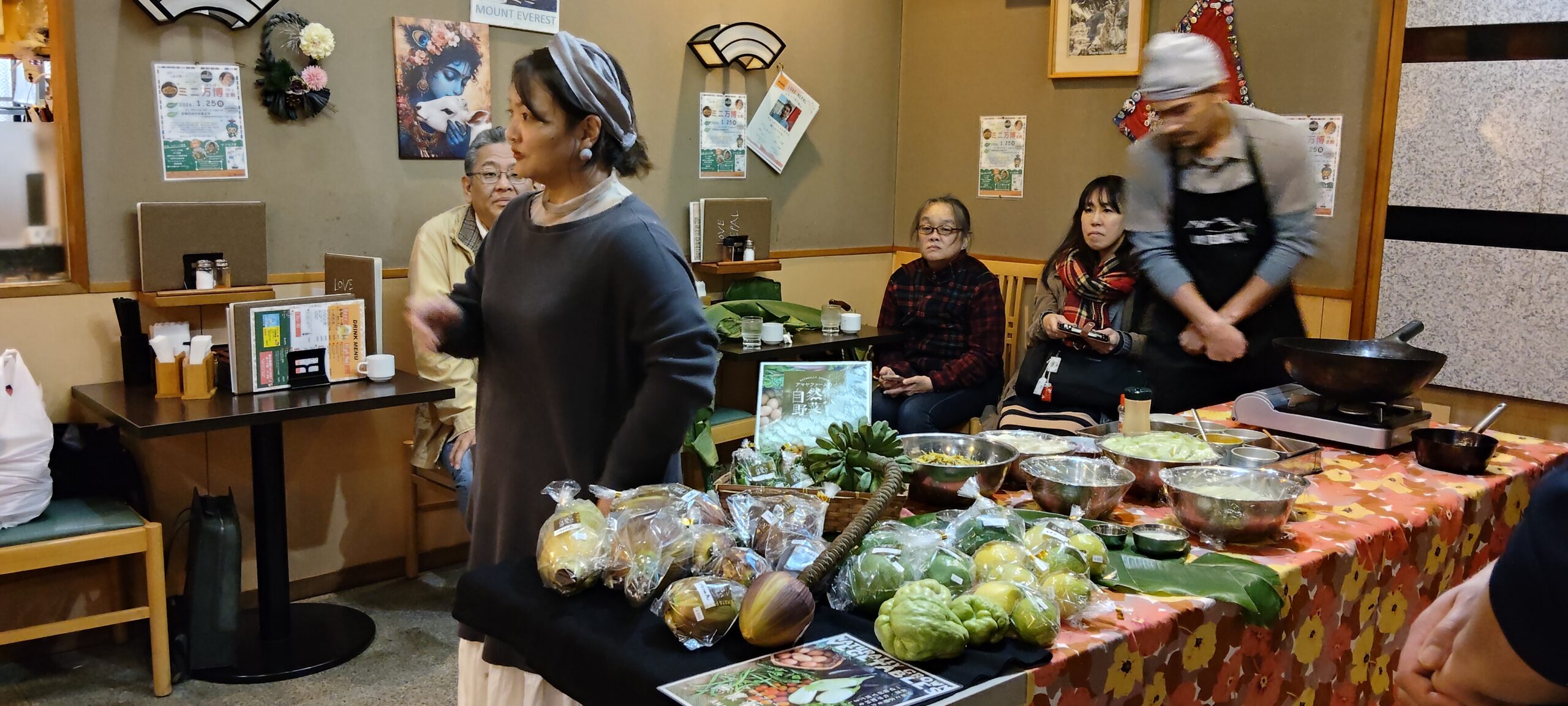 9回目の開催となる12月は、「珍野菜料理教室」と題して、日本ではあまり食べないがネパールではポピュラーな野菜を使ってタルカリやアチャールというごはんのお供の作り方を学びました!