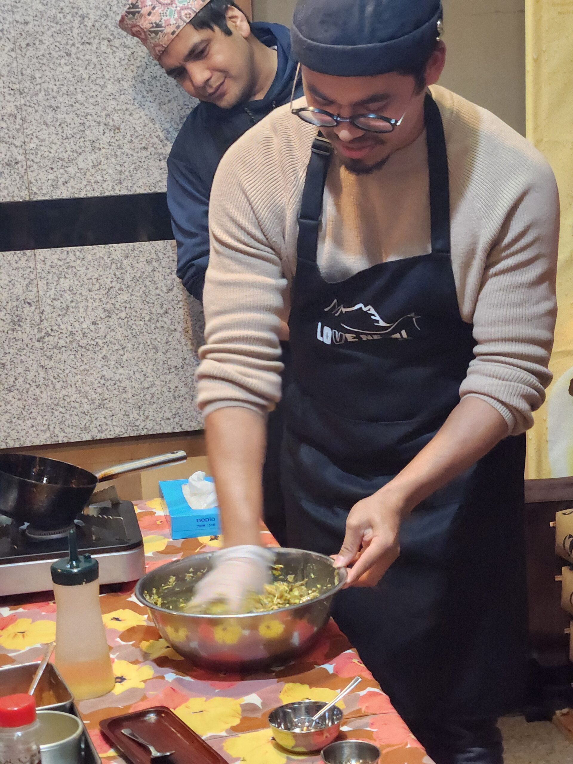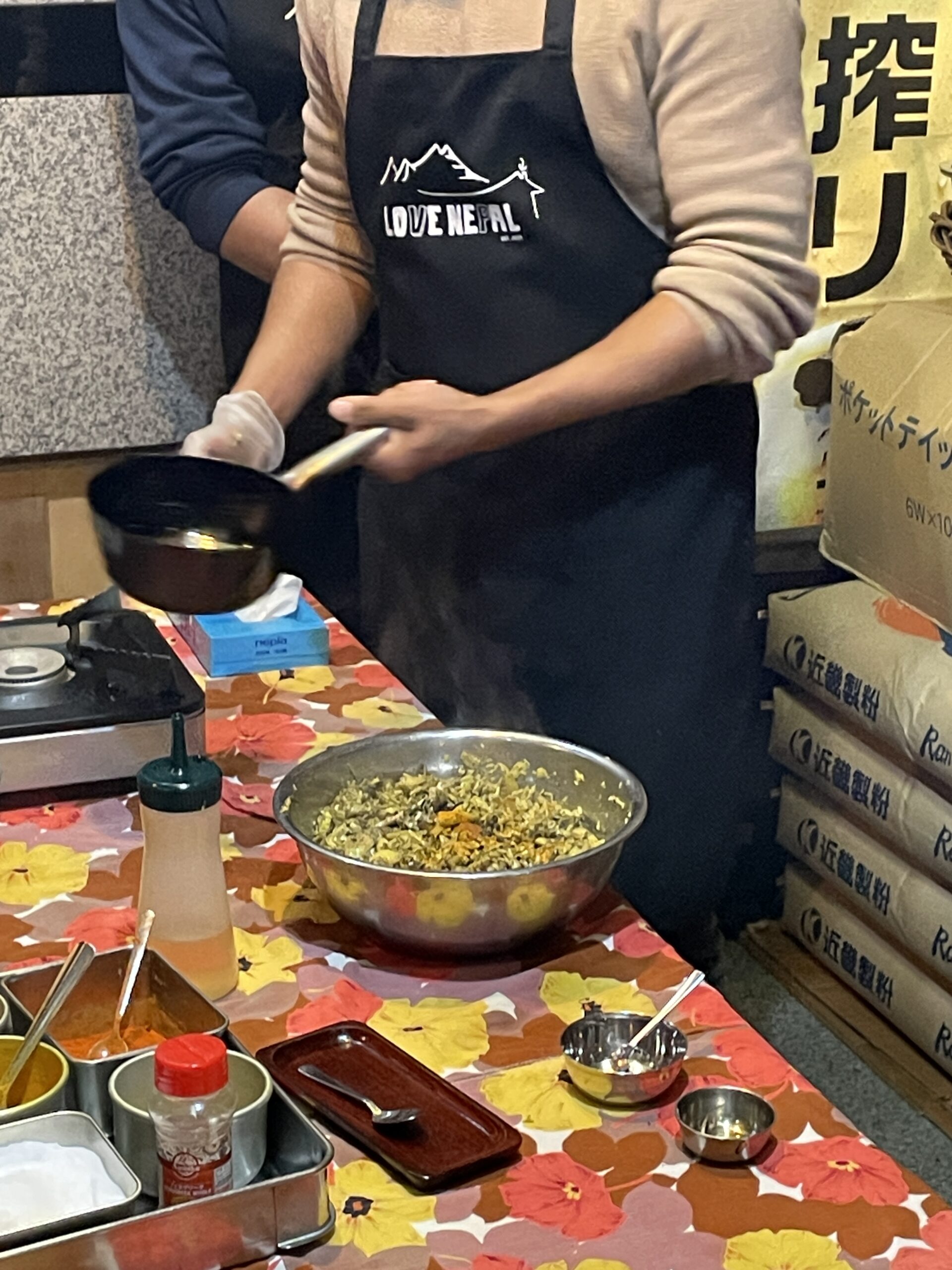 開催場所はLOVE NEPAL 金剛店。オーナーであり、南海沿線のキーパーソンでもあるラビンさんが作り方を説明しながらイベントを行いました。