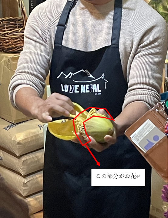 参加者の皆さん、バナナの花って食べられるの?どこが食べられるの?状態でしたが、ラビンさんが丁寧に説明してくれます。