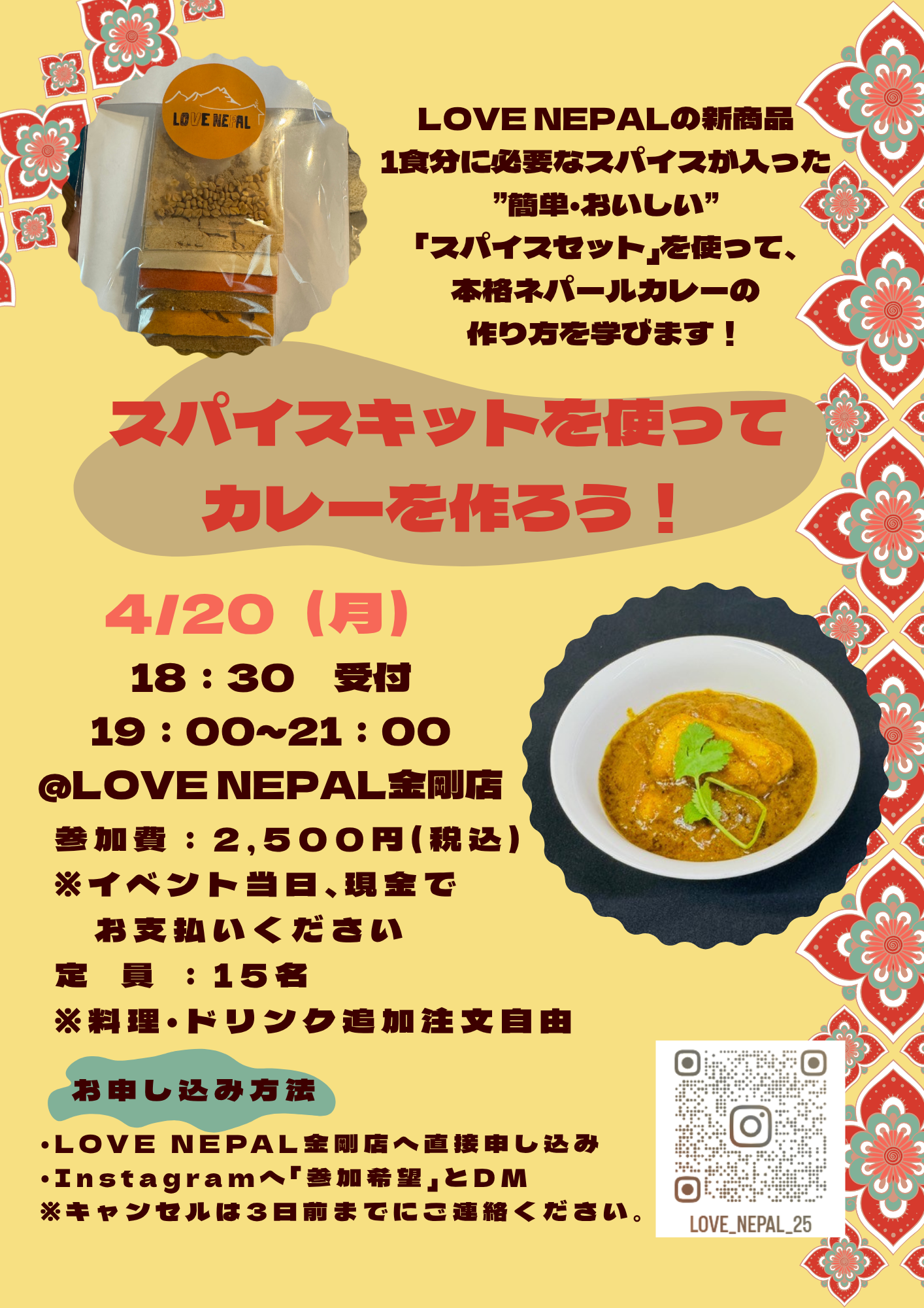 今回も大盛況だったLOVE NEPAL金剛のイベント。次回は4月20日(月)に「スパイスキットを使ってカレーを作ろう!」を開催予定です。