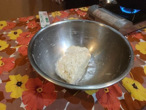 耳たぶより少し固いくらいで生地がまとまったら、30分ほど寝かせておきます。